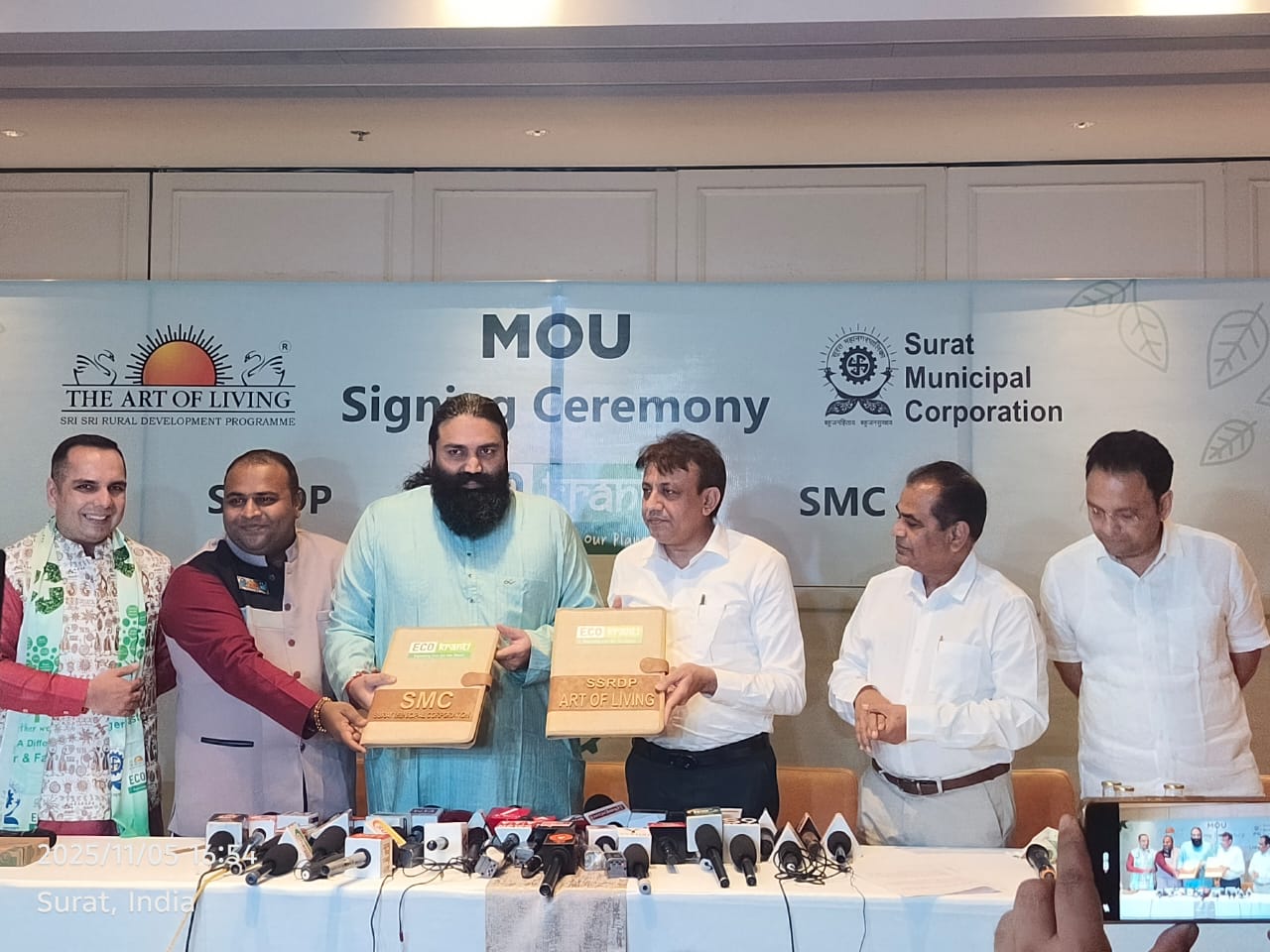 आर्ट ऑफ लिविंग के Sri Sri Rural Development Programme & Sustainability (SSRDP) और सूरत महानगरपालिका (SMC) के मध्य हुए सहमति ज्ञापन (MoU) के अंतर्गत यह ऐतिहासिक पहल आज से प्रारंभ हुई।