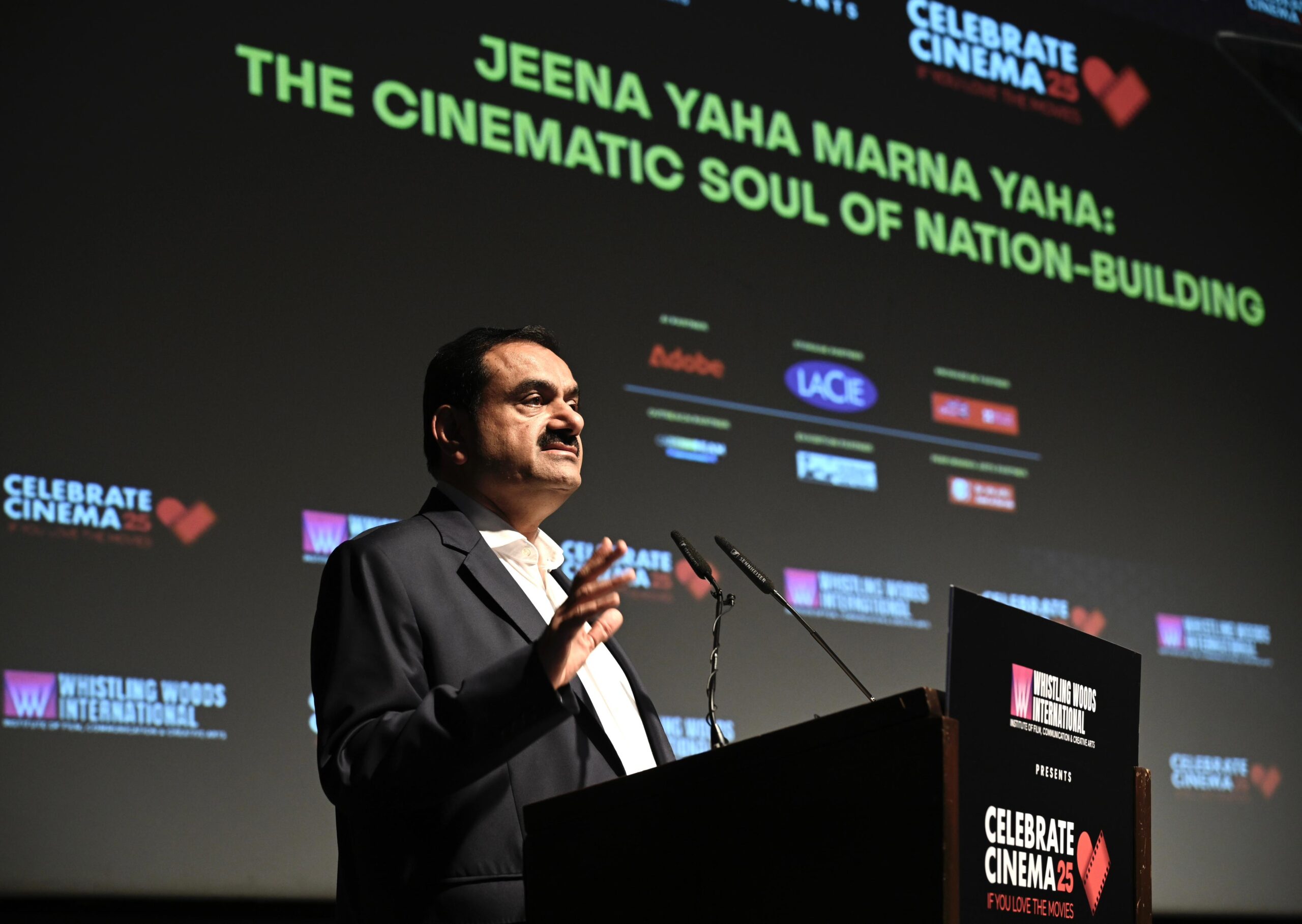 अदाणी समूह के चेयरमैन गौतम अदाणी इस बार किसी बिजनेस इंस्टिट्यूट या समिट में नहीं बल्कि सिनेमा के स्टूडेंट्स के बीच थे। गौतम अदाणी ने मशहूर प्रोड्यूसर-डायरेक्टर सुभाष घई द्वारा स्थापित व्हिसलिंग वुड्स इंटरनेशनल में सिनेमा के स्टूडेंट्स को संबोधन किया। उन्होंने सिनेमा के छात्रों और उद्योग जगत की हस्तियों को बताया कि सिनेमा राष्ट्र निर्माण की आत्मा है और साथ ही चेताया भी कि कहानियां – चाहे वे कला, मीडिया या बाजार में हों – भाग्य को तय करने की शक्ति रखती हैं।