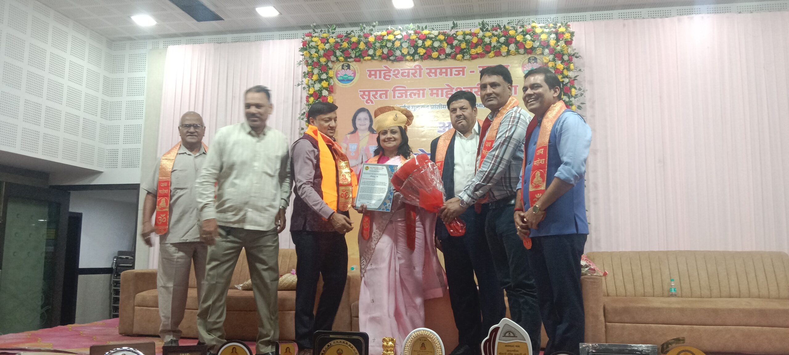 इस अवसर पर सूरत जिला माहेश्वरी सभा के अध्यक्ष पवन बजाज,सचिव अतिन बाहेती व पदाधिकारी के साथ जिला सभा के कार्यकारिणी सदस्य एवं सभी क्षेत्रीय सभाओं के पदाधिकारी व समाज की अन्य अनेक संस्थाओं, महिला मंडल द्वारा उन्हें मोमेंटो भेंट कर सम्मानित किया गया। समारोह में अखिल भारत वर्षीय माहेश्वरी महासभा, गुजरात प्रदेश माहेश्वरी सभा के सदस्य सहित समाज के अनेक अग्रणी जन गणमान्य व्यक्तियों की गरिमामयी उपस्थिति रही।