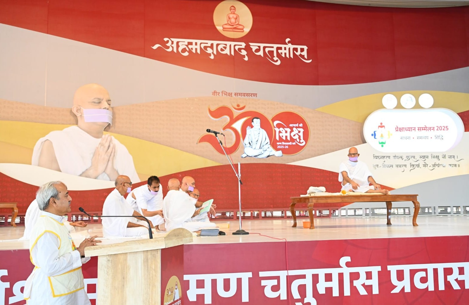 आचार्य की मंगल सन्निधि में प्रेक्षाध्यान सम्मेलन का मंचीय उपक्रम भी रहा। इस संदर्भ में प्रेक्षाध्यान एकेडमी के अध्यक्ष भैरुलाल चौपड़ा, जैन विश्व भारती के अध्यक्ष अमरचंद लुंकड़, अध्यात्म साधना केन्द्र, दिल्ली के अध्यक्ष केसी जैन व प्रेक्षा इण्टरनेशनल के मंत्री गौरव कोठारी ने अपनी भावाभिव्यक्ति दी। वर्तमान अधिशास्ता आचार्य महाश्रमणजी ने इस अवसर पर पावन प्रेरणा प्रदान करते हुए कहा कि वर्तमान में प्रेक्षाध्यान कल्याण वर्ष चल रहा है। इन वर्षों में प्रेक्षाध्यान का काफी विकास हुआ है। विदेशों में प्रेक्षाध्यान के ट्रेनर जाते हैं आज तकनीक के साथ प्रेक्षाध्यान का विकास हो रहा है। इसमें चार संगठनों का योग है। यथौचित्य इस कार्य में और अधिक गति का प्रयास किया जा सकता है।