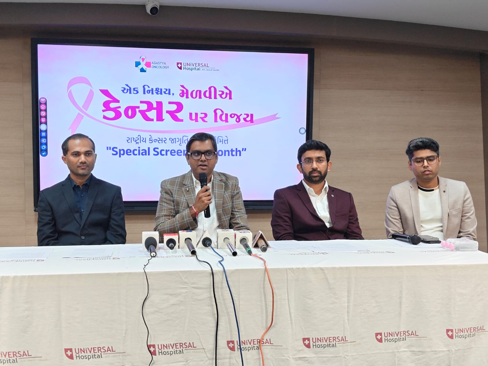 सूरत। भारत में 7 नवंबर को राष्ट्रीय कैंसर जागरूकता दिवस मनाया जाता है। इसी दिन सूरत शहर की अगस्त्य ऑन्कोलॉजी मेडिकल टीम “एक निश्चय, कैंसर पर विजय” अभियान शुरू कर रही है, जिसके अंतर्गत एक महीने तक कैंसर जागरूकता एवं कैंसर जांच शिविर का आयोजन किया गया है। यह शिविर 7 नवंबर से 6 दिसंबर, 2025 तक सूरत के खटोदरा क्षेत्र स्थित यूनिवर्सल अस्पताल में आयोजित किया जाएगा।