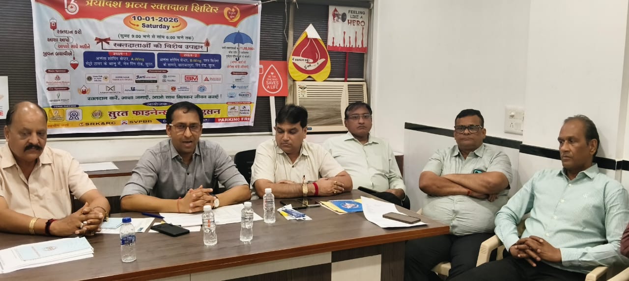 सूरत फाइनेंस एसोसिएशन आयोजित मेगा ब्लड डोनेशन कैम्प 10 जनवरी को