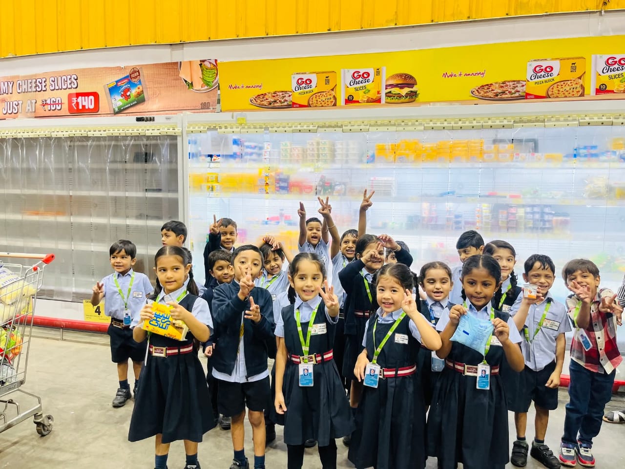 अनुभवात्मक शिक्षण को प्रोत्साहित करने के तहत, छात्रों ने रिलायंस सुपरमार्केट का दौरा किया, जहां उन्होंने उत्पाद वर्गीकरण, बिलिंग प्रक्रिया, भंडारण प्रणाली और ग्राहक सेवा कार्यों को नज़दीक से देखा। इस गतिविधि ने न केवल दैनिक उपयोग की वस्तुओं के प्रति उनकी जागरूकता बढ़ाई, बल्कि जिज्ञासा और स्वतंत्र सोच को भी प्रेरित किया।
